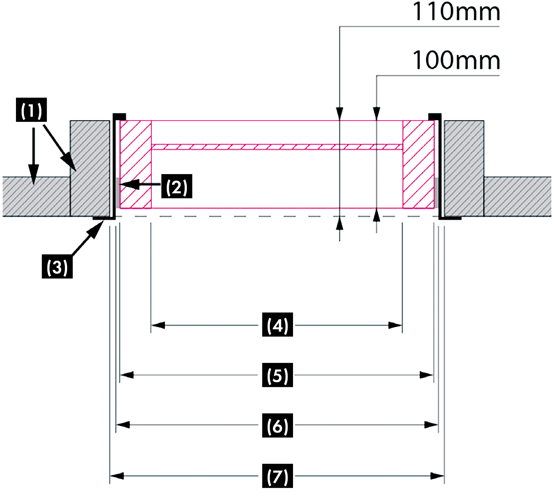 (5) - Dimensões exteriores do registo: (Ln + 70) x (Hn + 290) mm